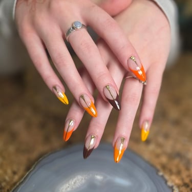 Art on 1 - 2 nails. Great for statement fingers or subtle pops like chrome, flames, or sparkle.
